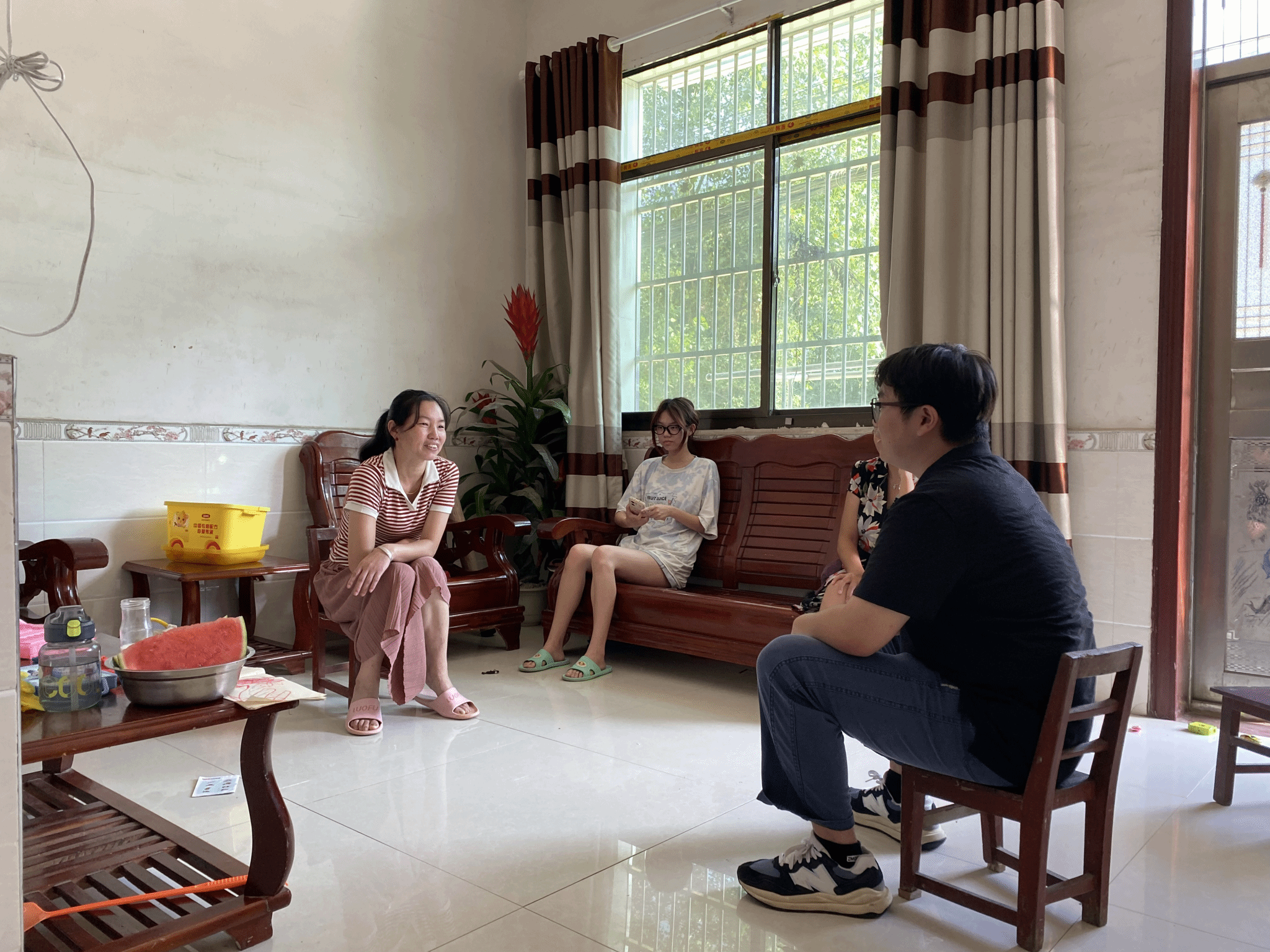 辅导员高天麒来到蕲春县漕河镇大路铺村的田同学家中,了解学生的假期生活。家长表示田同学十分懂事,暑期积极参加实践活动,没有因为假期就松懈。高天麒为田同学解答了大学生活中的一些困惑,鼓励她认真学习,积极参加各类实习实践活动,为毕业以后的人生打下牢固的基础。