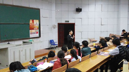 2015年11月12日晚7点,龙席电商电商咨询事业部总经理陈涛应邀在我校阳光校区07-T302作了一场题为“正青春”的专题讲座。太阳集团网tyc9728杜进、何国正老师、毕业班辅导员程鹏和近300名学生参加了本次讲座。