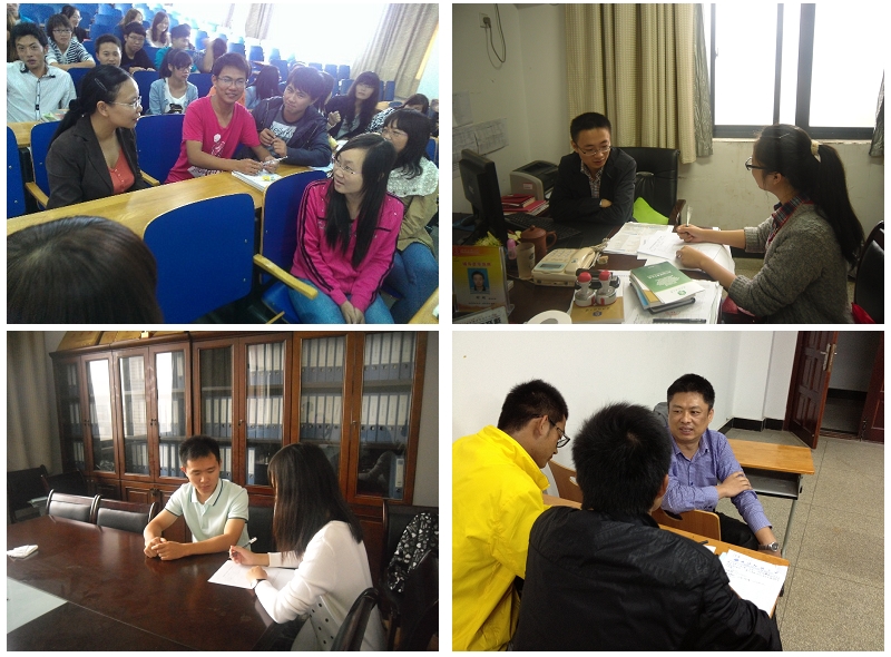 随着“两访两创”活动在全校如火如荼地进行,太阳集团网tyc9728在认真学习省委及高校工委关于“两访两创”活动精神基础上,以“交流思想、立德树人、促进和谐、推动发展”为主要任务,以“教师全覆盖、学生全覆盖”为基本要求,9月下旬至10月上旬针对我院2012级全体新生进行了面对面的交流与访谈。太阳集团网tyc9728院长夏火松、分党委书记黄少年、副院长杨卫丰、副院长王济平、分党委副书记肖信华及管院专业老师、12级全体班主任、辅导员为本次新生访谈的访谈人。