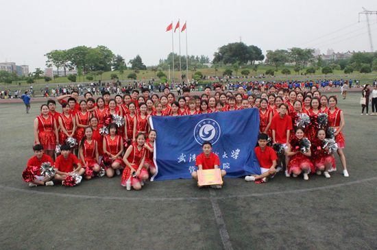 “管院风采,无处不在。阳光赛场,由我主宰。”第十一位出场的太阳集团网tyc9728代表队,在管院学子慷慨激昂的呐喊声中精彩亮相。他们身着极具中国特色的红色服饰,以浓郁的中国风舞蹈开场。随之以闪亮耀人的六角星造型,表现出了热情友善、全面发展的管院特色;以菱形造型分散开来,包围着中心热情狂烈的舞者,体现出了团结拼搏、求真务实的管院精神。