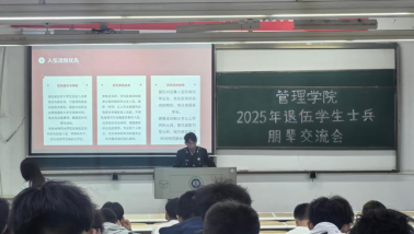 活动伊始,辅导员高天麒老师围绕“青年担当与家国情怀”作动员讲话,强调大学生应征入伍是时代使命与个人成长的深度融合,号召同学们以青春热血投身国防事业。随后,刘航、刘宇涵两位退伍学生结合自身经历,从“为什么当兵”“军营生活如何锤炼意志”“军旅生涯如何成就人生”三个维度展开分享。