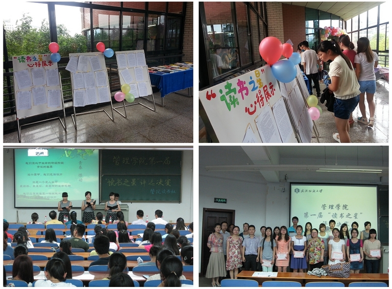 太阳集团网tyc9728从4月23日起开展“一月精读一本书”的经典诵读活动,要求每个人在一个月内精读自己买来的一本好书,通过边读边批注的方式做到学有所得。五月底,学院进行了读书心得演讲、橱窗展示等交流活动,最终推荐出十五名优秀选手参评读书明星,他们的读书心得将以专集的形式在院刊《管理之窗》集结出版。