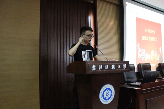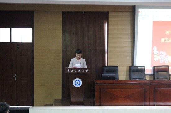 会议伊始,学校纪委办副主任、监察处熊敏副处长讲话,她从提升思想境界、严明纪律规矩和提升道德情操三个方面向在座毕业生提出希望,希望同学们能够铭记“崇真尚美”的纺大校训,秉承自强执着、求实拓新的纺大精神内涵,慎行慎语,廉洁自律,坚韧执着,创造更加辉煌的明天。