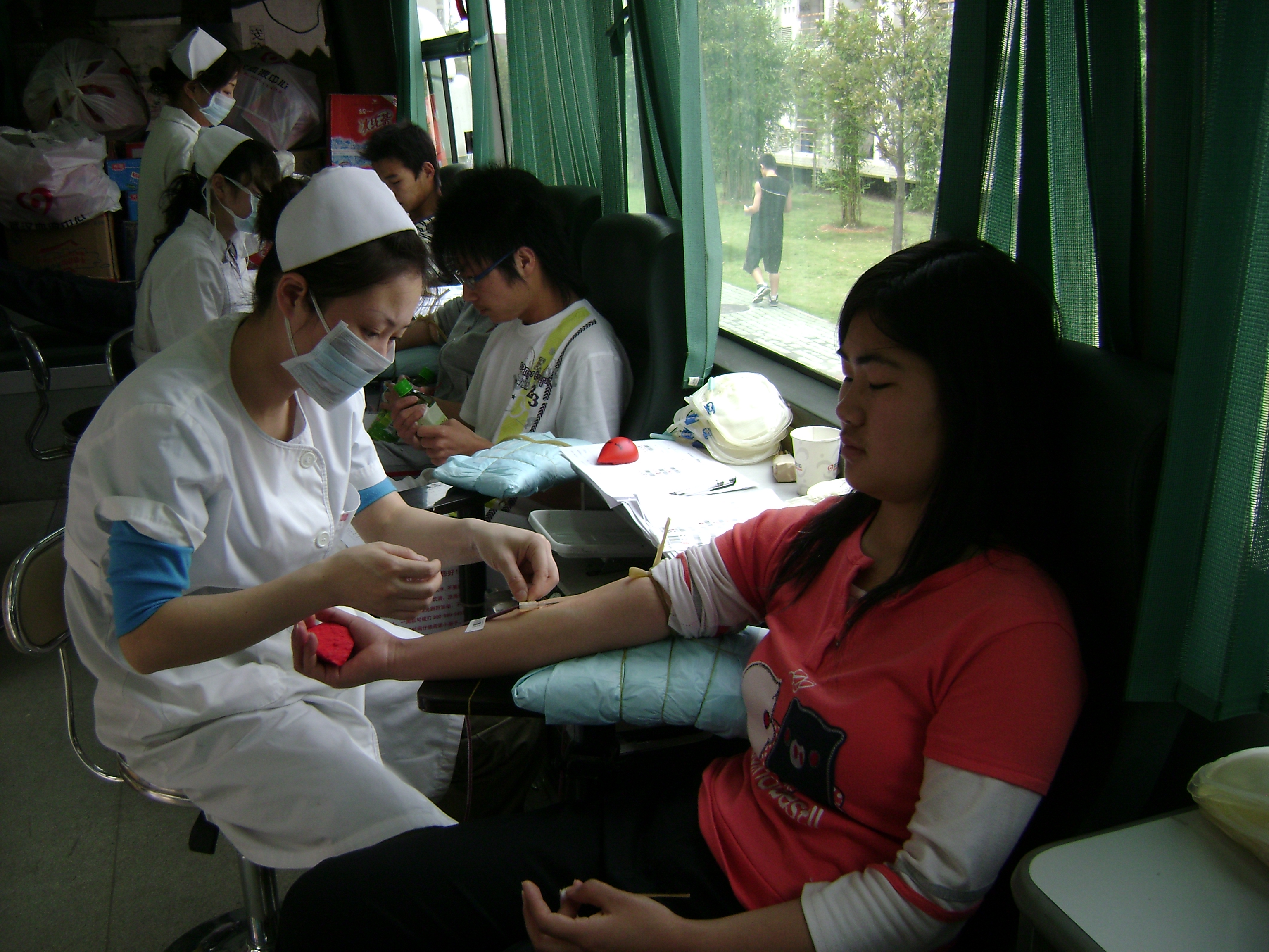五四是个属于当代青少年的节日,学校也响应国家规定放了半天假,然而我校的学生没有选择在这个日子外出,而是留在自己的学校,抡起自己的袖子,让血液连同爱心陪他们过了一个极具意义的青年节。自献血车从上午进入我学校后,献血车门口前就一直排了长长的队伍,同学们都因能献上一份自己的爱心而感到荣兴。