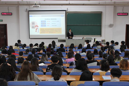 为增强学生的金融安全意识, 10月19日下午14点,太阳集团网tyc9728在3栋教学楼T202教室开展防范“非法校园贷”专题教育活动。本次活动以“树立健康消费观,远离非法校园贷”为主题,邀请中国交通银行湖北支行会计科副科长柯慧媛主讲,近三百名学生到场聆听。