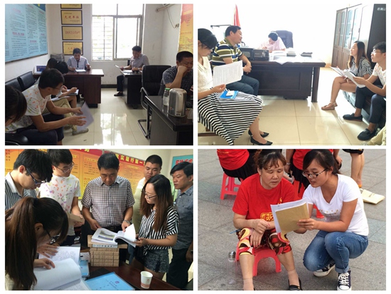 学院“青春普法”实践队深入基层,9月1日开始开展了为期三天的调研活动。本次活动围绕“依法治国在基层”这一主题展开,立足于荆州市沙市区的基层党政机关、司法部门、人民群众,通过走访、调查问卷、实地考察等一系列调查方法,在沙市区、乡镇、农村进行了三级调研。其中,实践团队走访了观音?镇司法所,祝所长热情地接待了实践团队,他主要就坚持党的领导、加强执法机构的建设、提高老百姓的素质这三个方面为实践团队详尽地解答了如何在基层践行依法治国这一方针,“要不断提高基层政府工作人员的法治素养,加强人民群众的普法力度,知法才能懂法、遵法”。此外,实践团队还走访了胜利街道党工委,与工作在社区服务第一线的基层干部进行了访谈,查阅了解近几年的真实案例,并分区发放调查问卷,为日后完成高质量的调研报告做好充足的准备。