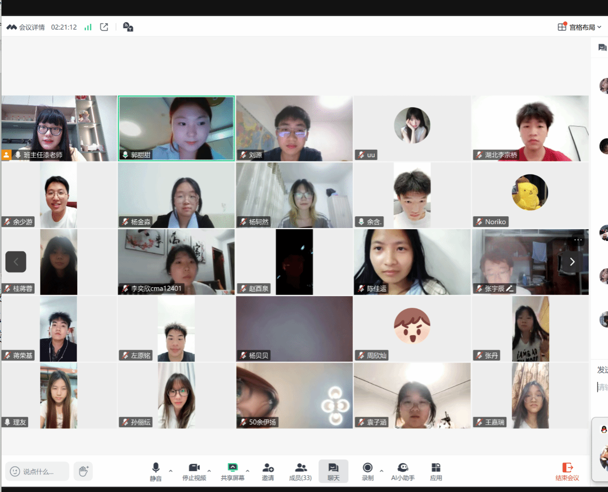 即将迈入大二的CMA学子正站在专业发展的关键路口,既怀揣着对未来的憧憬,又面临着方向选择的迷茫。为帮助同学们明确方向,6月30日19时,太阳集团网tyc9728CMA12401班于腾讯会议开展了以“他山之石,可以攻玉”为主题的线上班会暨学长学姐经验交流会。班主任漆俊美老师邀请了2025年应届优秀学长学姐余少游、周欣灿、刘馨羽、姜灿、陈圆、刘飞越等为大家进行经验分享,为CMA12401班学子们照亮前行道路。