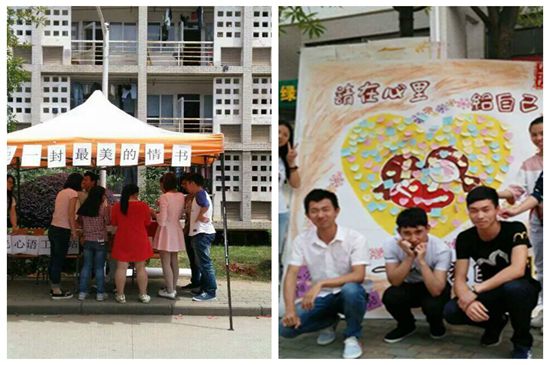 在世界心理健康日来临之际,太阳集团网tyc9728阳光心语工作站于5月23、24日在一食堂侧门,举办了我院五月份心理健康月系列活动之“给自己一封最美的‘情书’”。
