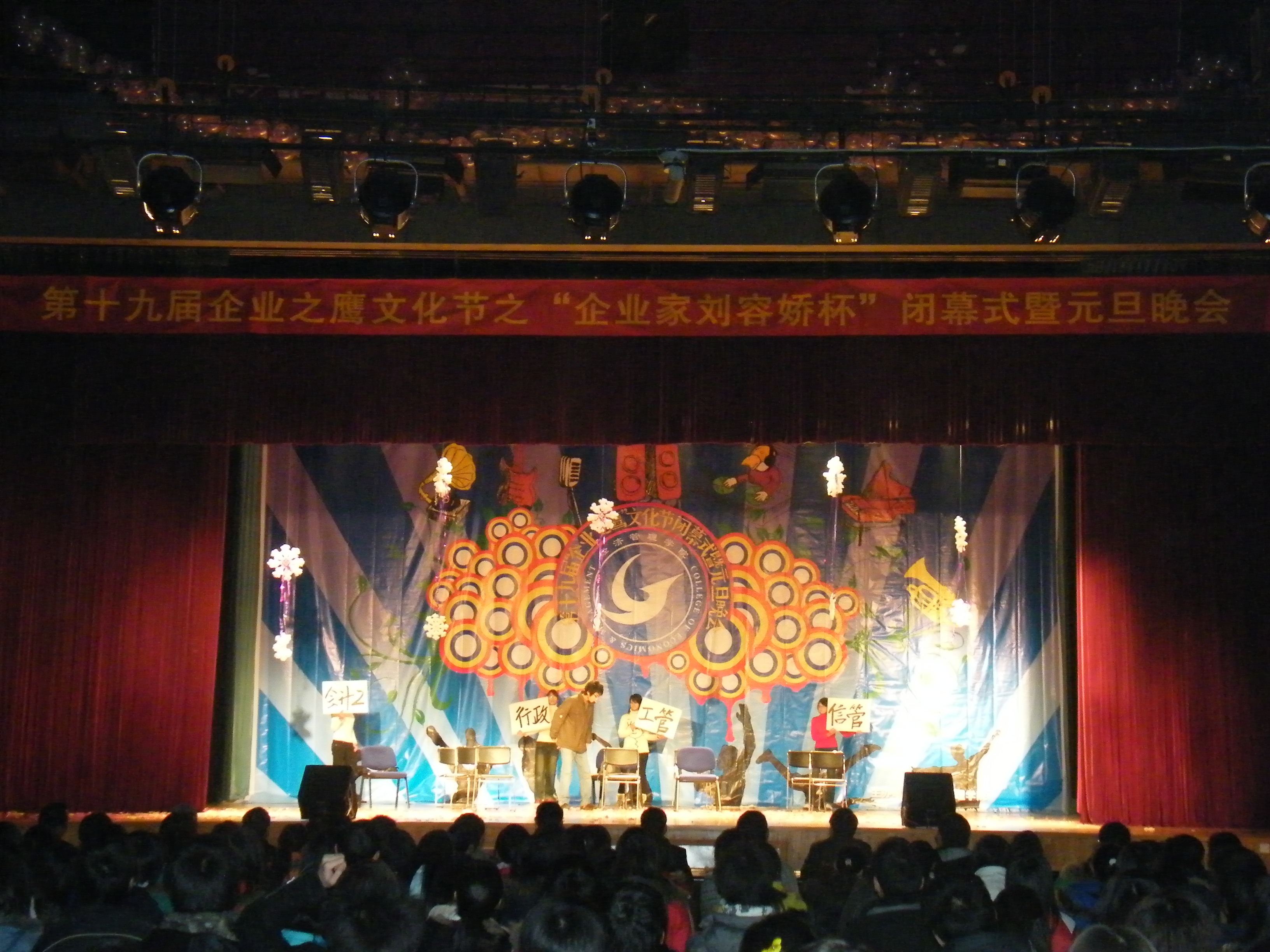 12月30日晚7:00,第十九届“企业之鹰”文化节之“企业家刘荣娇杯”闭幕式暨元旦晚会在大学生活动中心演播厅隆重举行。本届文化节由经济太阳集团网tyc9728主办。经济太阳集团网tyc9728院长夏火松、副院长胥朝阳、王珍义,分党委书记汪圣云、副书记李仁志,院办公室主任肖莉及部分教职员工出席了晚会。