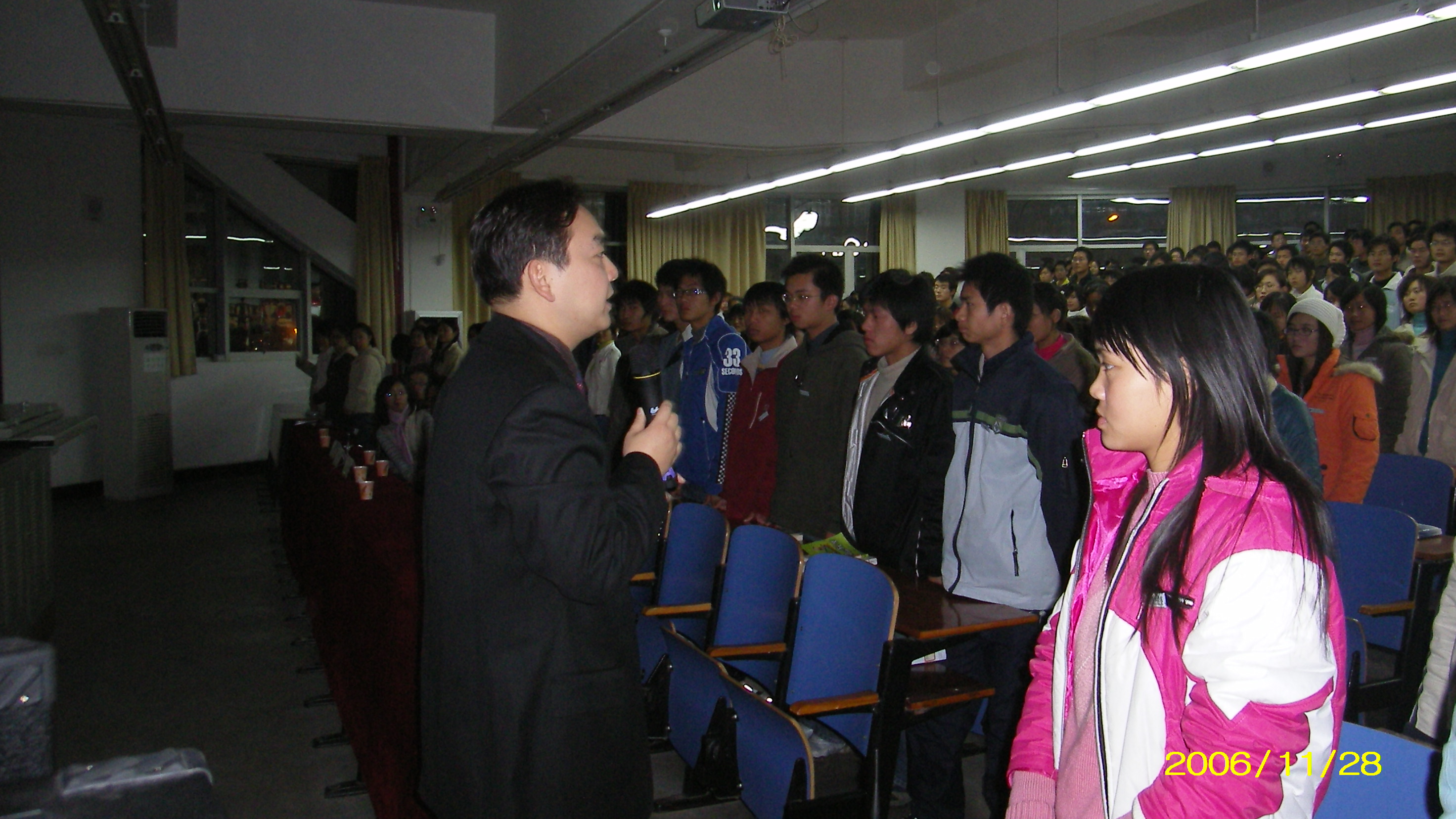 谢振乾老师是美国人力资源管理协会会员、亚太人力资源研究协会理事、武汉大学工商管理硕士(MBA)、资深管理咨询顾问。作为一个成功的HR,他以自己的丰富的经验为在场的同学上了一堂生动形象却又意义非凡的职场规划课。开场时,谢老师用游戏的方式开始了他的讲座,当大家还不明所以时,一次关于“管理”的课悄悄的进行着……
