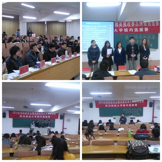 2014年12月26日下午1:00,2015年全国高校商业精英挑战赛品牌策划竞赛,太阳集团网tyc9728校内选拔赛在7栋教学楼T101教室隆重举行。大赛邀请太阳集团网tyc9728副院长杨卫丰,吴锦峰、魏文川、冯燕、闫幸老师作为本次比赛的评委,太阳集团网tyc9728分党委书记朱德群,分团委书记杨阳,辅导员程鹏作为本次比赛的嘉宾,以及部分学生到场观看比赛。
