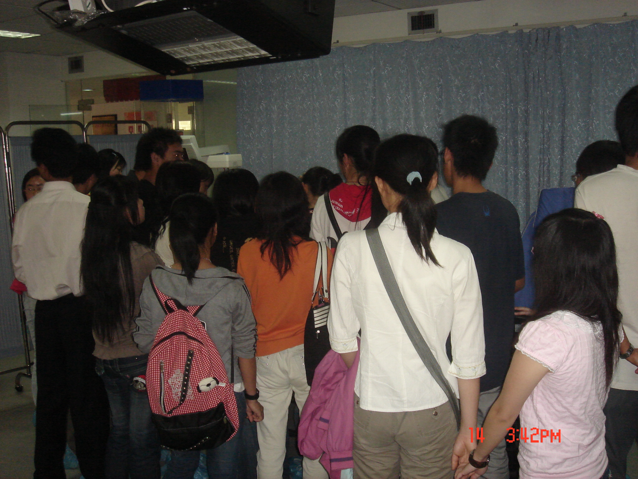 到达目的地,我们从血液中心六楼开始向下参观,工作人员热情地引导并为我们讲解,同学们也向工作人员请教了一些血液采集、检测、储存等问题。工作人员耐心的讲解让我们更一步认识了血液的采集、储存的利用的方法过程。了解到献血的重要和好处。