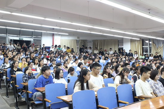 10月7日晚上19:30,太阳集团网tyc9728乐言辩论队在03-T102为2018级新生呈现一场精彩、激烈的辩论表演赛。本次辩论赛以“佛系 是不是当今社会的幸福之道”为题展开辩论,乐言辩论队成员和大一全体新生到场观看。
