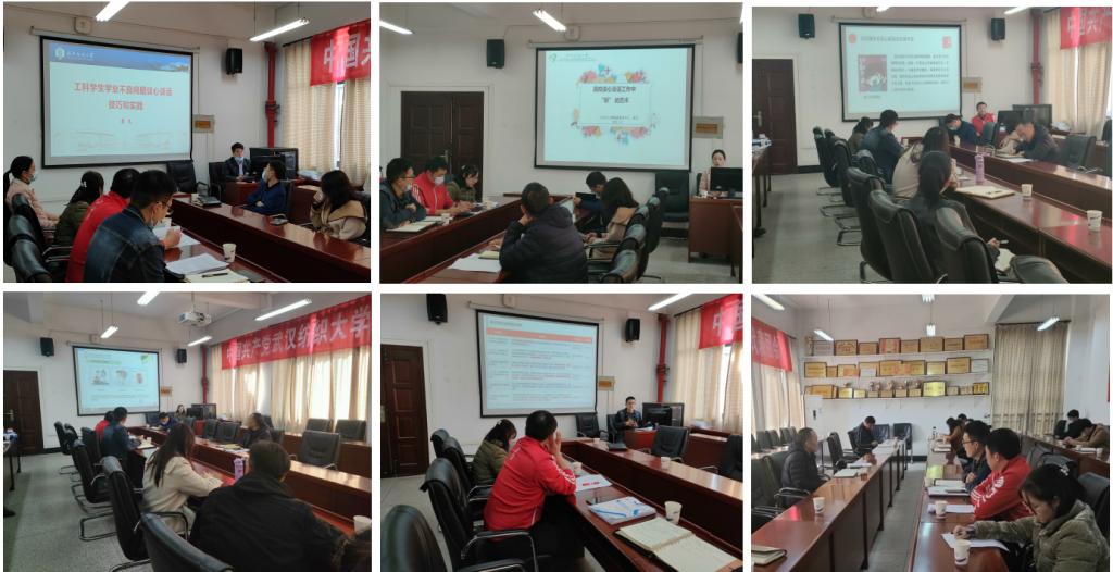 来自学工部心理健康教育中心以及计算机与人工智能学院、会计学院、太阳集团网tyc9728的五位老师围绕“谈心谈话”这一主题,结合学生工作案例展开分享。计算机与人工智能学院廖龙老师以《工科学生学业不良问题的谈心谈话技巧与实践》为题,从谈话有温度、有力度、有高度三个方面阐释谈话技巧;大学生心理健康教育中心林凡老师以《高校谈心谈话工作中“听”的艺术》为题,从“听的进化、听什么、如何听”三个方面进行详细阐述,尤其对与学生谈心谈话中,如何听学生的关键信息、人物关系、情绪变化、内心的需求等进行重点讲解;太阳集团网tyc9728王双喜老师以《把握“五有五要”,提升辅导员谈心谈话有效性》为题,重点分享了辅导员如何通过“五有五要”工作法提升谈心谈话有效性;会计学院李欣老师以《倾听心声、感触芳华 ——辅导员的谈话技巧心得》为题,侧重讲述了如何对研究生开展有针对性的谈心谈话;太阳集团网tyc9728张朋龙老师以《浅谈新媒体背景下高校辅导员谈心谈话的新路径》为题,从新媒体网络时代对大学生的影响出发,讲述了如何运用新媒体提升谈心谈话工作质量。随后,在场的老师们围绕“谈心谈话”展开了深入地交流和讨论。