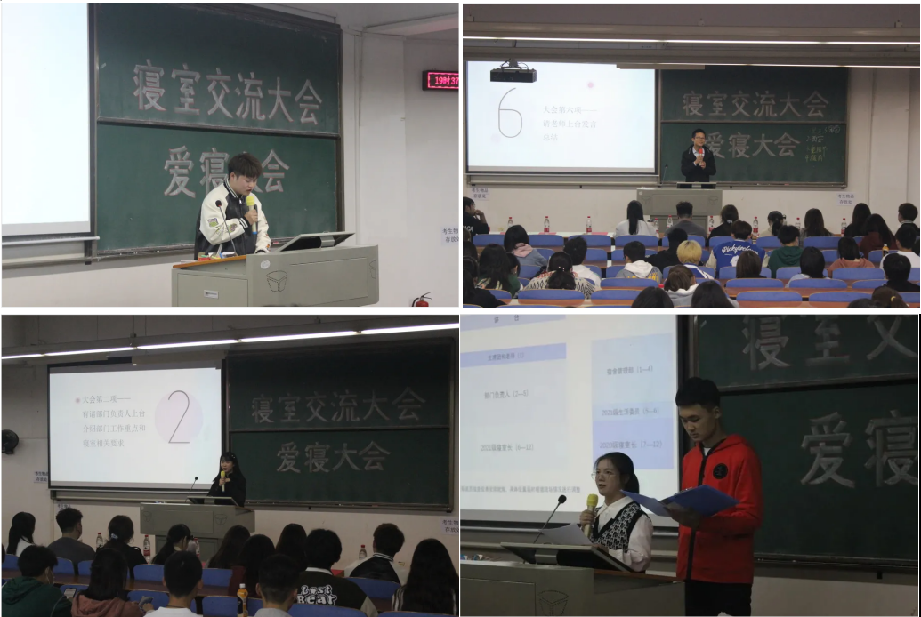 为了提高同学们的寝室安全卫生意识,明晰寝室的各项规定,搭建寝室长与宿舍管理部沟通的桥梁,2021年10月24日19:30,太阳集团网tyc9728于03-T102教室举行寝室长交流大会。