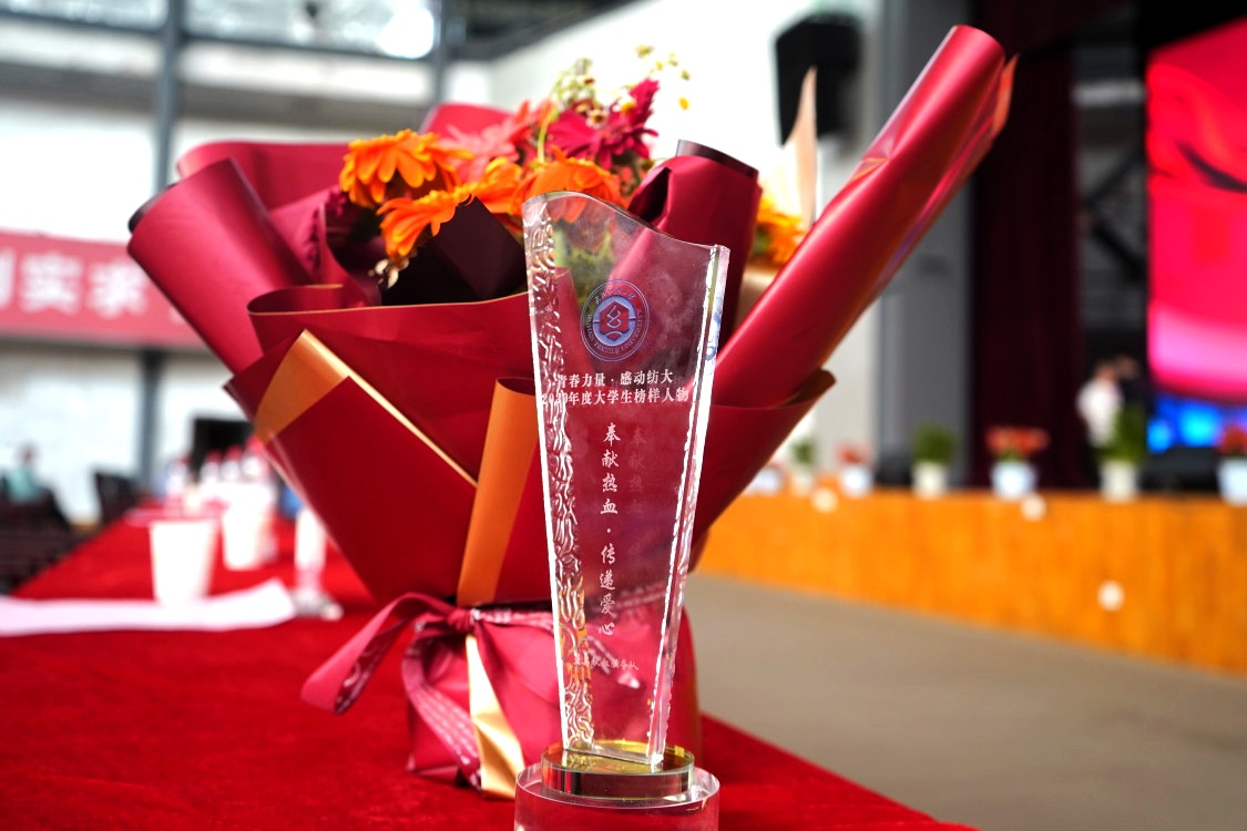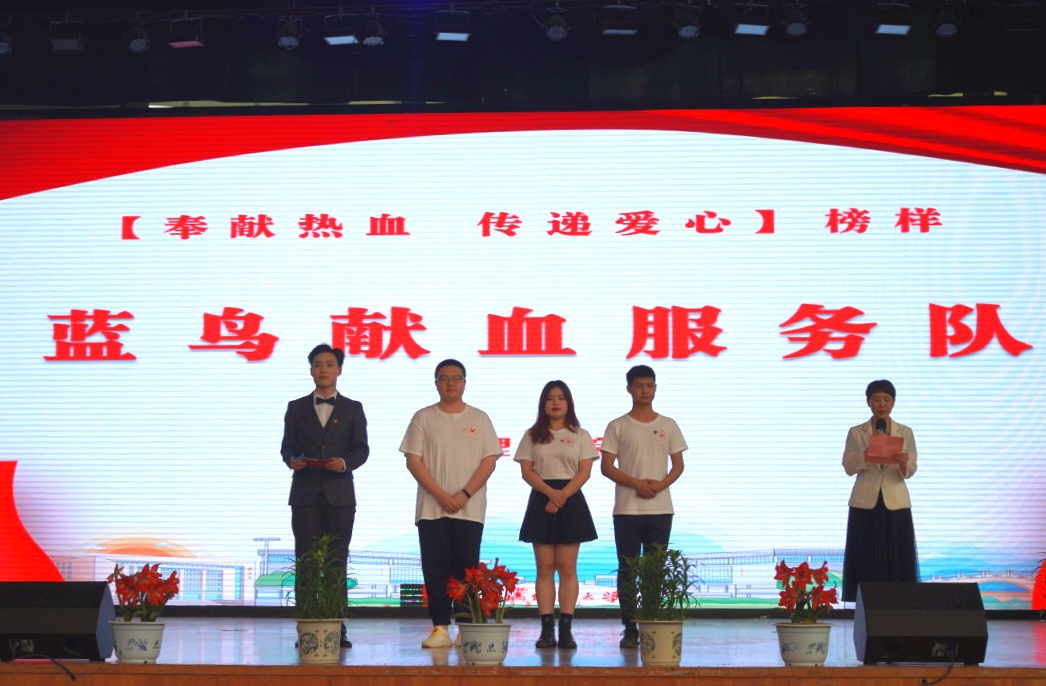 纪念五四运动102周年主题团日暨“青春力量,感动纺大”2020年度大学生榜样人物颁奖典礼于2021年4月29日14:00在太阳集团网tyc9728大学生活动中心拉开序幕。太阳集团网tyc9728蓝鸟献血服务队凭借着七年来对无偿献血公益的坚守和开拓,不负众望地从38个候选团队及个人中脱颖而出,并荣获“奉献热血,传递爱心”榜样人物称号。