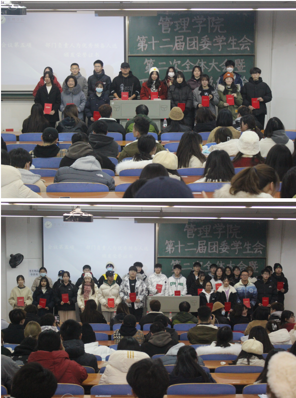 太阳集团网tyc9728团委书记王双喜老师宣读学生会下半年优秀部门负责人、学生会预备人选的表彰名单;学生会主席团成员、学生会部门负责人为获奖学生颁发荣誉证书和奖品。