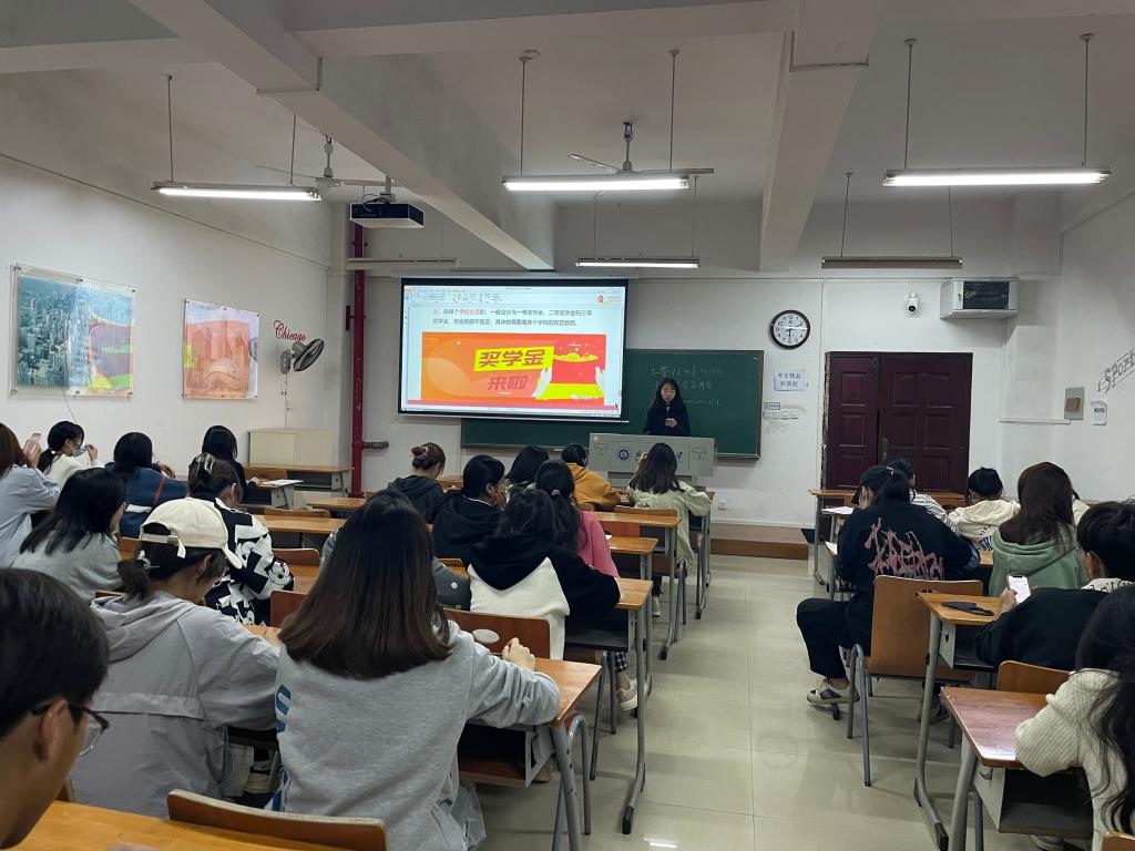邓兰和许清纯围绕着国家奖学金、国家励志奖学金、国家助学金、学校奖学金以及本科生各类社会奖助学金等方面向同学们进行了详细的介绍。他们向同学们解读了学院家庭经济困难学生的认定办法,介绍了国家、学校及社会各类奖助学金的申报条件、评定办法以及评选注意事项。随后,各班级资助评议小组代表将会议要点在晚点名班会进行宣贯。
