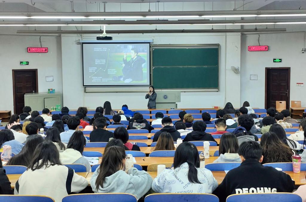 邓瑶从职业生涯三问“你想成为一个什么样的人”、“你想过一种什么样的生活”、“你想从事一份什么样的工作”引发学生对职业生涯的思考;通过复盘“口红一哥”李佳琦的成功经历与大家分享职业选择三原则,即要拥有毕生发展的眼光、依赖自身努力而非外界、遵循社会行业发展趋势;鼓励同学们遵循三原则的基础上结合自身性格、兴趣、能力、价值观进一步完善职业发展之路。