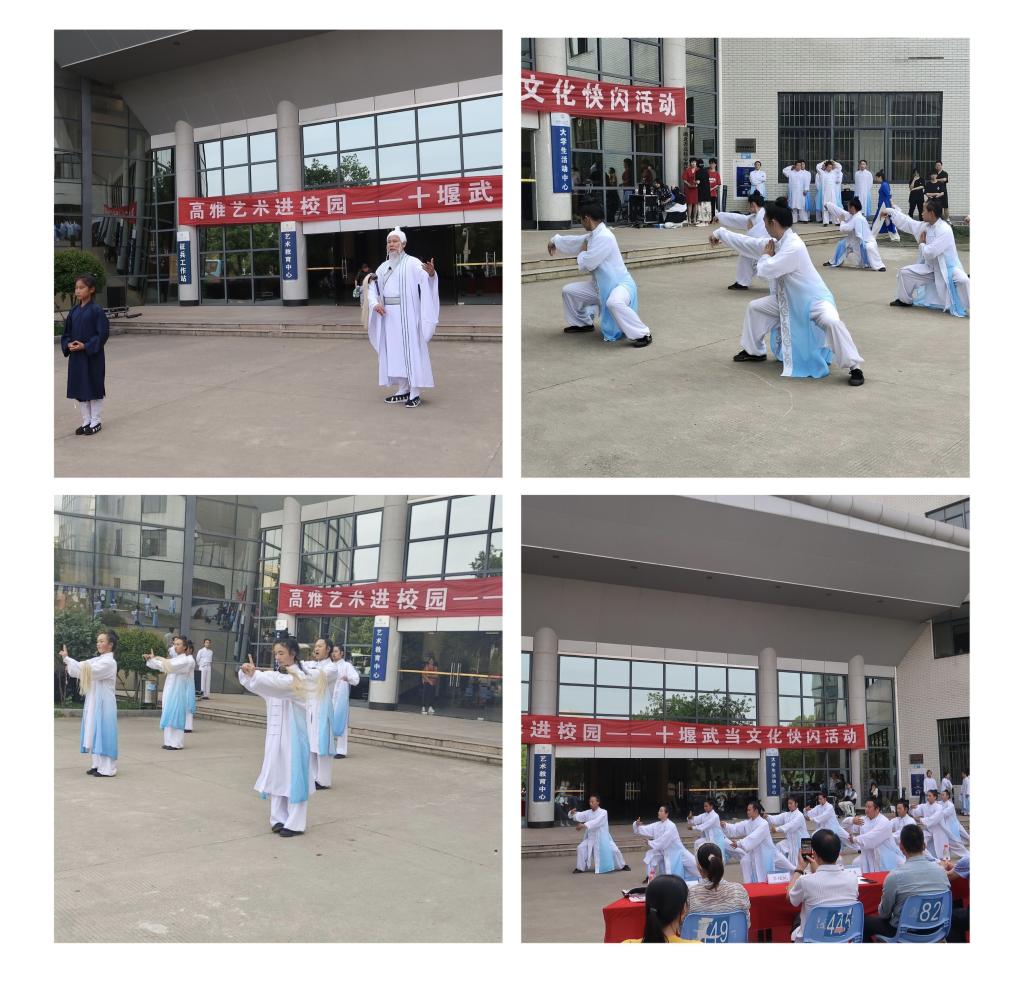 武当山灵,灵通天下。4月21日,由中共十堰市委武当山特区工委宣传部和学校团委联合主办、太阳集团网tyc9728承办的“高雅艺术进校园——十堰武当文化快闪活动”在阳光校区大学生活动中心举行。武当山特区工委委员、纪检监察工委书记王俊峰、武当山特区工委宣传部副部长、融媒体中心主任冯开春、武当山特区文旅局局长费利民、武当山特区武汉办事处主任郭理斌、校工会常务副主席肖迪明、学工部副部长夏贤辉、校团委副书记侯畅等领导出席,本次活动吸引了校园内众多学生的关注。