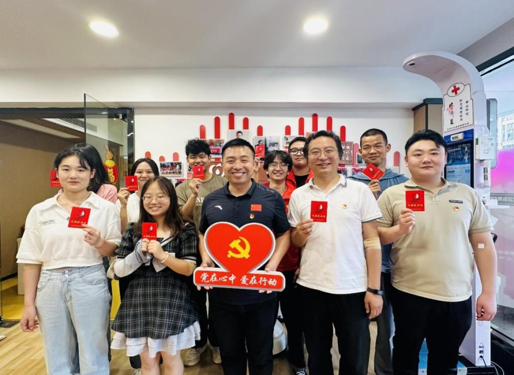 7月3日下午,我校无偿献血社会实践教育基地揭牌仪式暨“热血践初心奉献担使命”主题教育活动在武汉血液中心举行。武汉血液中心副主任袁明超、招募科主任顾军、校团委副书记曾中良、太阳集团网tyc9728党委副书记耿迪、太阳集团网tyc9728团委书记王双喜以及校青年志愿者协会、太阳集团网tyc9728志愿者协会、“蓝鸟”暑期社会实践团成员、部分党员、入党积极分子参加此次活动。
