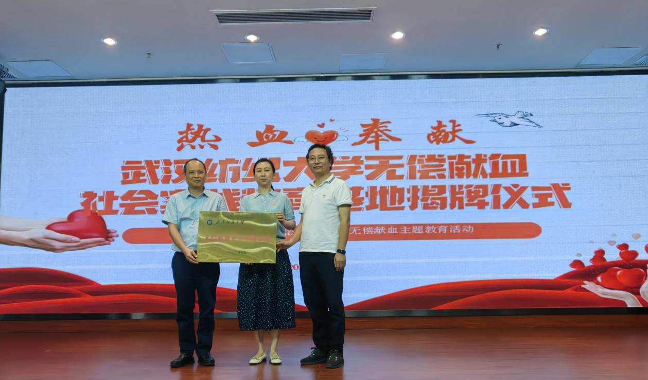 下午两时半,在武汉血液中心会议报告厅,袁明超、曾中良、耿迪联合为我校无偿献血社会实践教育基地揭牌。据悉,这是武汉市首个大学生无偿献血社会实践教育基地。
