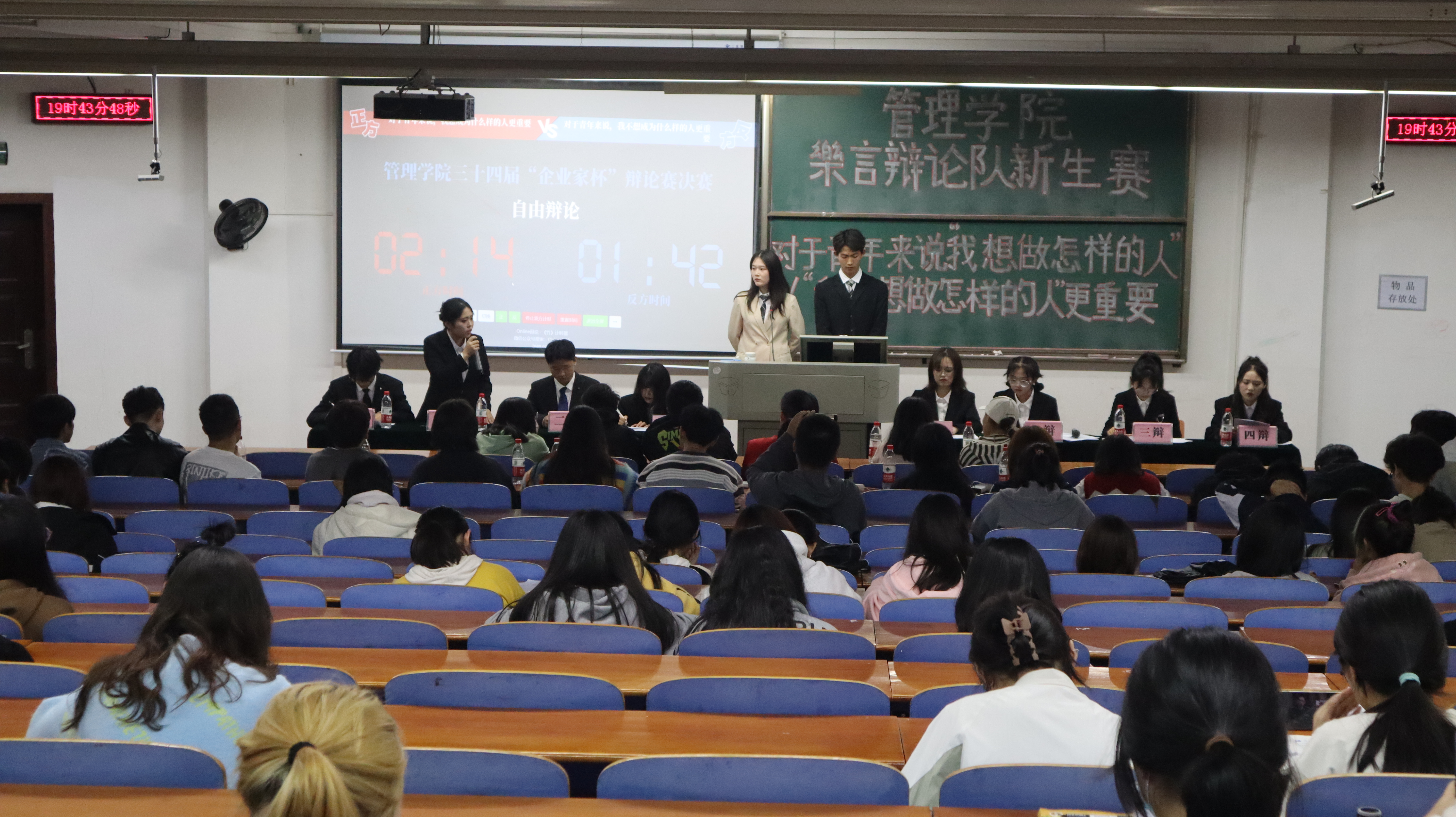 自由辩论环节,双方辩手反应敏捷,引得台下观众掌声阵阵。总结陈词环节,反方以青年人面临很多选择、青年人无法选择自己到底想要什么、青年人需要慢慢探索对己方观点进行总结。正方则结合青年人的现状以及强国有我的时代呼唤为此次辩论赛画上完美的句号。最终经现场评审团评判,本场辩论赛正方获胜,正方三辩余茜童获最佳辩手称号,反方四辩杨贵清获最具风度辩手称号。