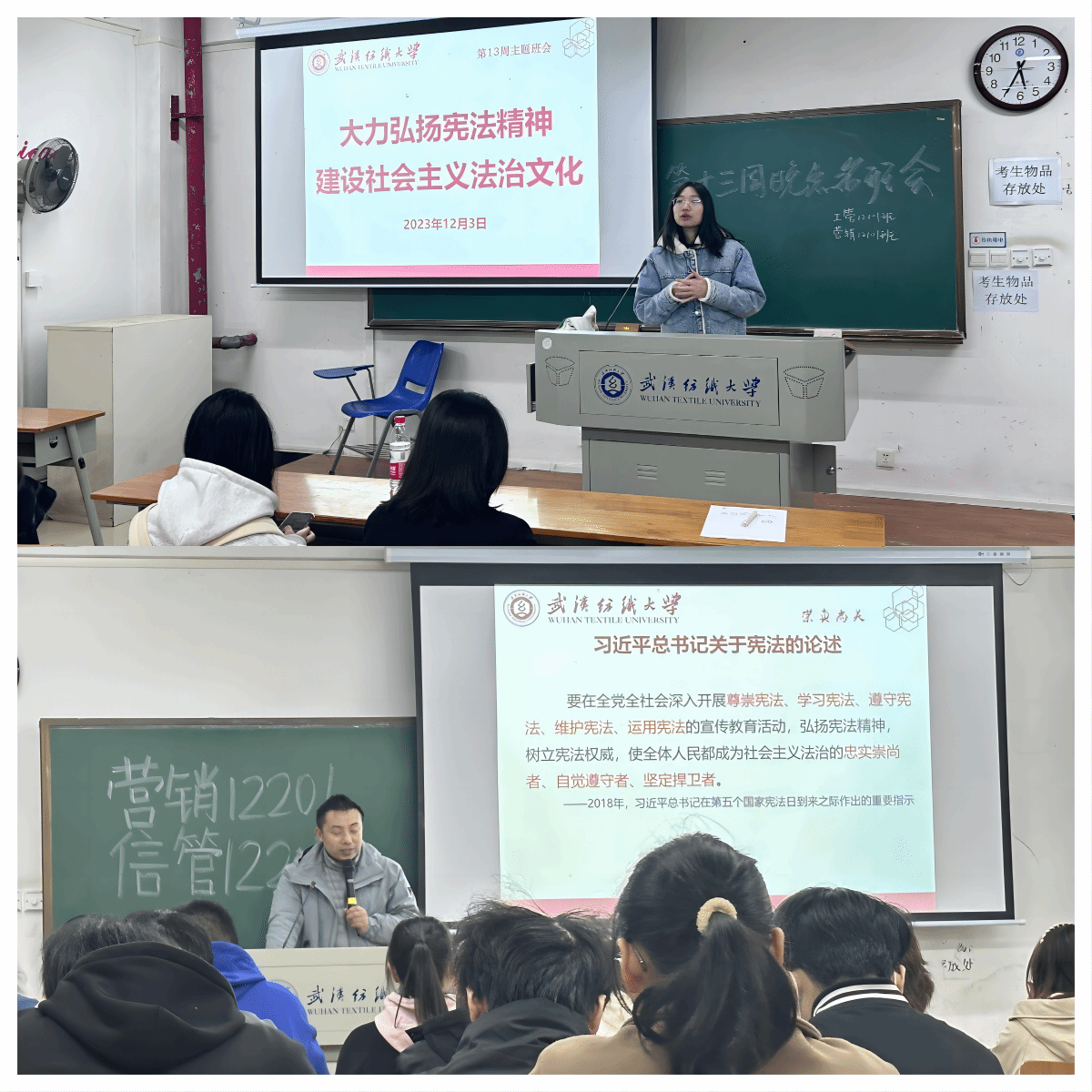 2023年12月1日至12月7日是我国第六个宪法宣传周,为大力弘扬宪法精神,强化大学生法治思维,增强宪法意识,12月3日下午,太阳集团网tyc9728开展“大力弘扬宪法精神 建设社会主义法治文化”主题教育班会,各班班主任和辅导员主持,全院所有班级学生参加。
