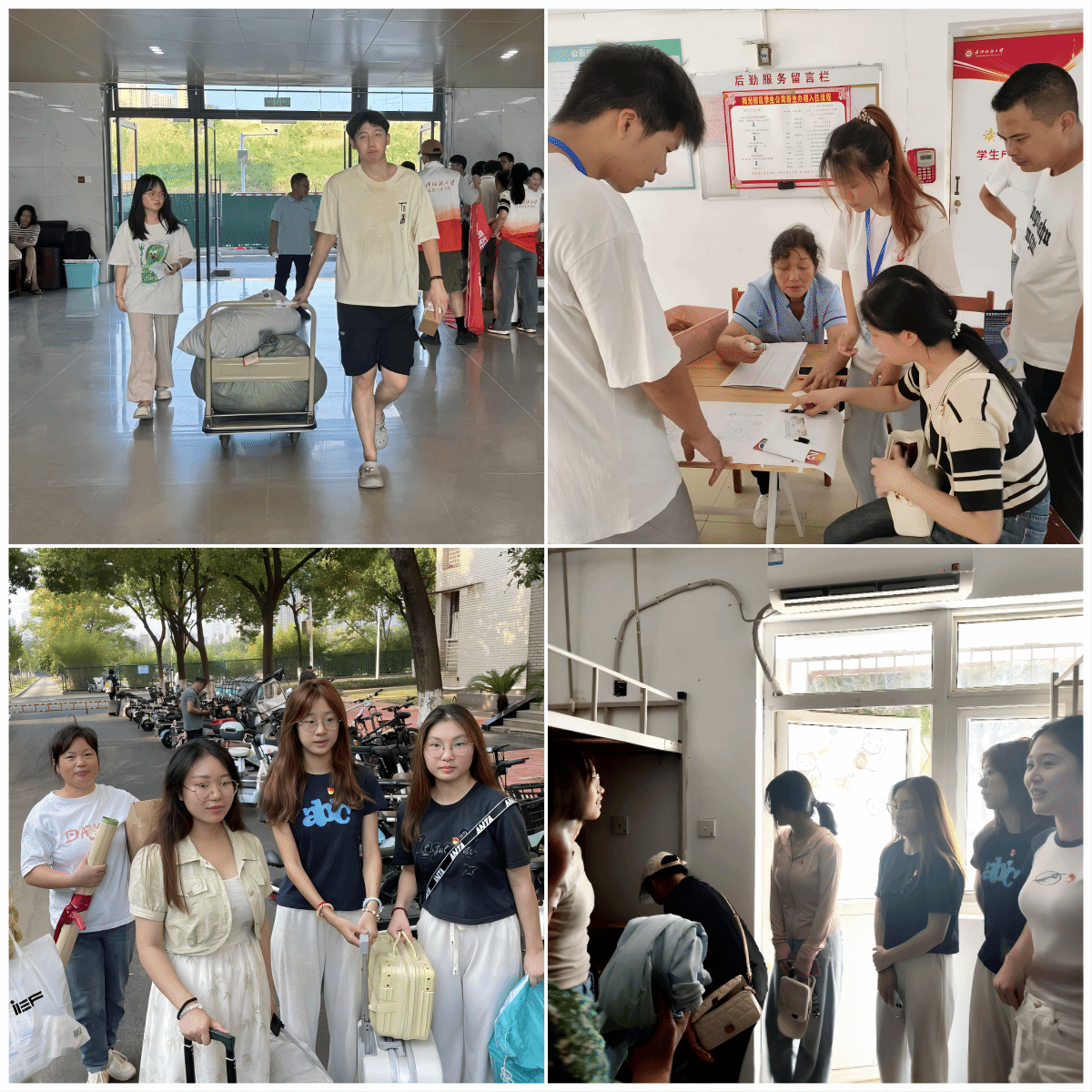 迎新现场,党员志愿者们积极为新生答疑解惑、搬运行李、解决问题,提供周到的服务,用真情和真心欢迎萌新们的到来。为了保证道路通畅,根据学院安排,志愿者们按照要求整齐摆放电动车和自行车,为行人提供良好的通行条件。同时党员们深入新生宿舍开展注意用电、防盗、防范电信诈骗等安全宣讲,提升新生的安全意识。