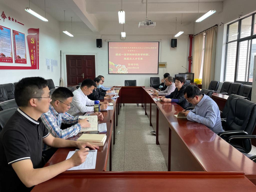 会上,学院院长吴金红以“一流学科建设、高层人才引育与管院发展”为题进行领学,从《纲要》关于学科建设的内容、二十大对学科建设提出新要求、学院目前发展现状和下一步学院加强学科建设的新任务四个方面分享了学习体会。