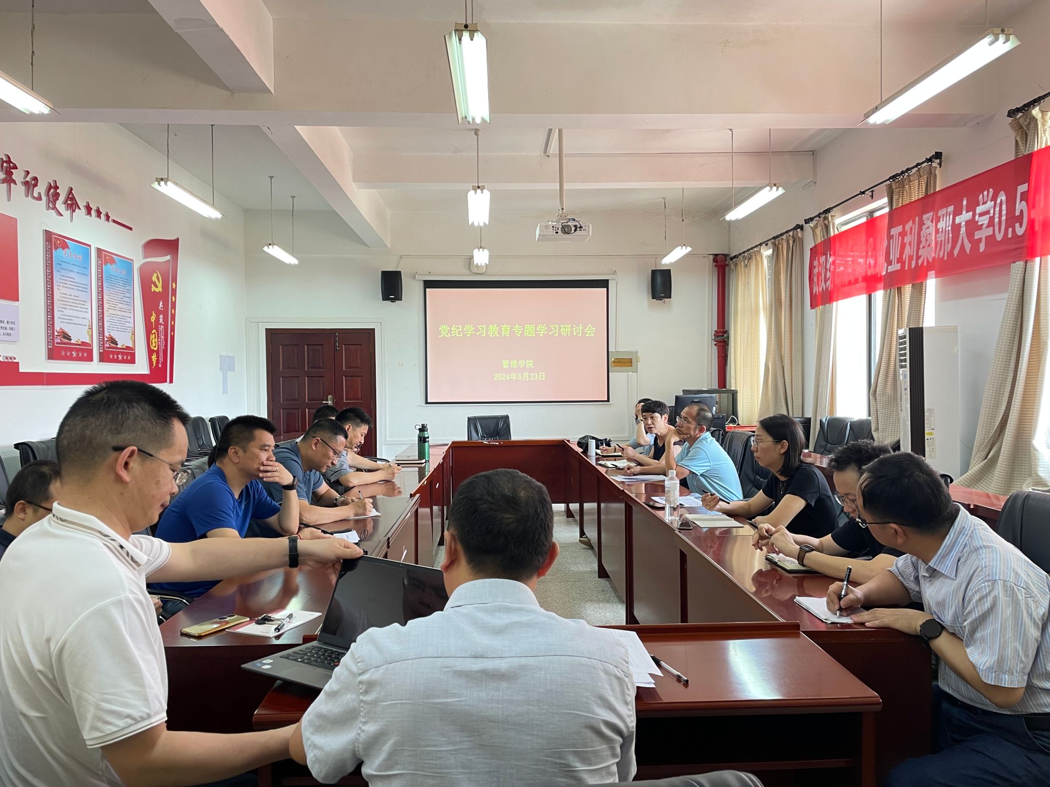 为推动党纪学习教育走向深入,5月30日下午,太阳集团网tyc9728召开党纪学习教育专题班,学院党委委员、系(中心、办)主任、党支部书记参会。学院党委书记滕胜娟以《锤炼党性修养 强化责任担当 护航学院发展》为题,做辅导报告。