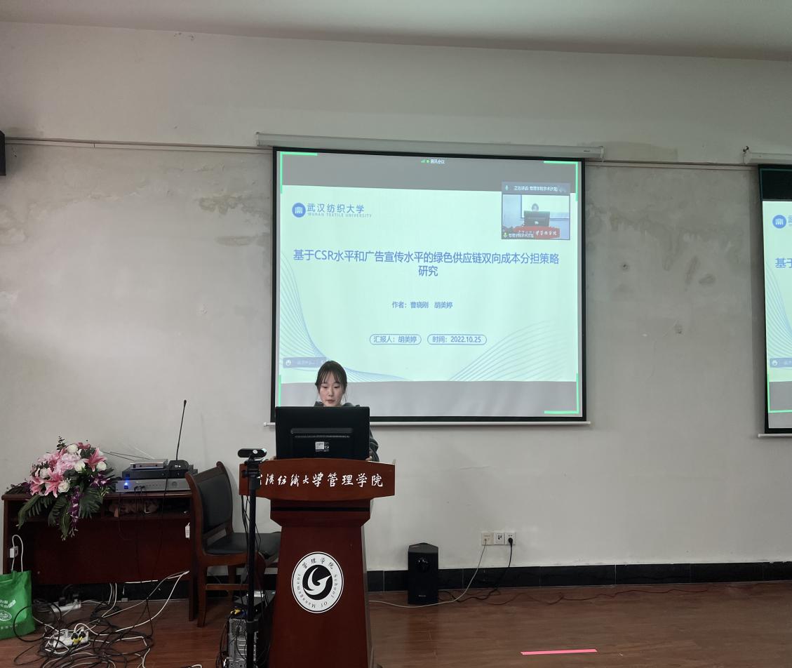胡美婷同学介绍了论文《基于CSR水平和广告宣传水平的绿色供应链双向成本分担策略研究》,文章采用Stackelberg博弈方法,研究制造商的绿色水平投入成本和零售商的宣传成本相互分担契约下的绿色供应链运营策略。本文构建了基于考虑企业社会责任背景的绿色双向成本分担数学模型,并给出了集中式决策和分散式决策下模型的均衡解,通过比较与分析表明,产品绿色度、供应链系统经济利润、消费者剩余和社会福利均随着供应链系统CSR水平及零售商CSR配置的增加而提升,且在双向成本分担契约中,制造商通过提高产品批发价格来提高自身利润会导致产品零售价格提高,消费者效用降低;当消费者对产品的绿色水平、宣传力度敏感时,供应链成员通过提高产品的绿色水平与宣传力度来增加产品需求,从而达到提升供应链成员利润以及供应链整体利润的目的。