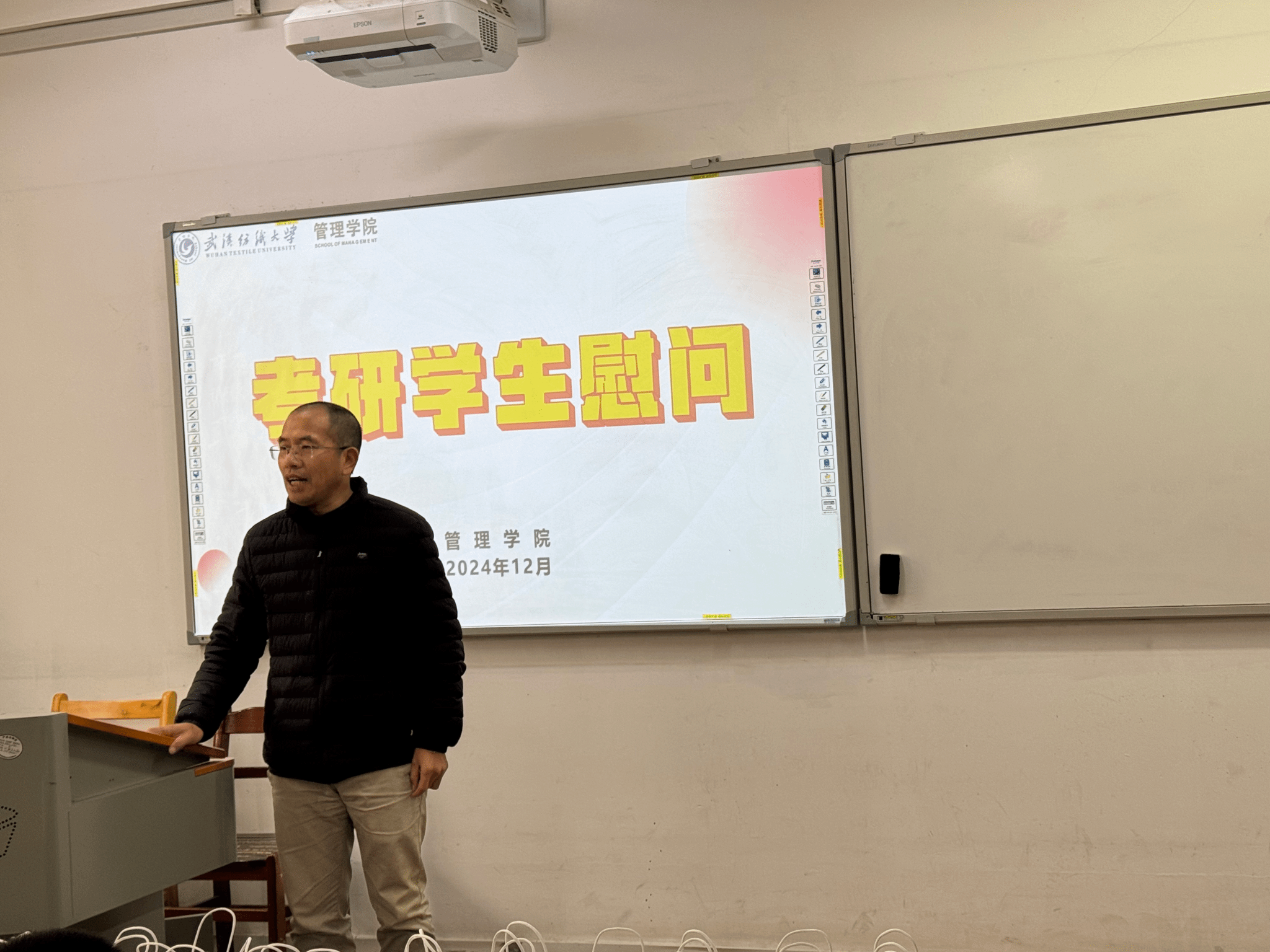 吴金红就当前研究生入学考试的整体趋势及本院学生的报考情况进行了深入分析,鼓励同学们抓住最后的冲刺复习时间,做到查漏补缺,不给自己留下遗憾。