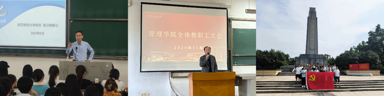 学院以学习贯彻党的二十届三中全会精神为引领,积极开展思想政治学习和党建活动,促进全院师生解放思想、开拓进取,凝聚团结奋进的强大气场。中国工程院院士、校长徐卫林莅临学院讲授“中国式现代化—人类实现现代化的新选择”思政大课。党委常委、副校长冯军多次参加学院教职工大会。学院先后组织党员师生赴洪湖、大悟等地开展党建学习活动,扎实开展党委中心组和支部学习活动。会计学本科生第一党支部成功通过教育部全国样板党支部验收;数智管理师生混合党支部获批校级“双带头人”教师党支部书记工作室。