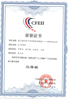 在本次大赛中,太阳集团网tyc9728学生在夏火松和万欣老师的指导下荣获佳绩,邓童洁、张宁婕、赵伟杰、王园团队的作品《基于强化学习的智能配料模型——以棉纱线为例》荣获三等奖;刘静如、谈邹、周嘉慧、侯晓宇团队的作品《基于可解释人工智能的面纱价格波动预测模型》荣获优秀奖,程佳欣、乔佳琦、郑爱乐团队的作品《多模态纺织大模型的构建》荣获优秀奖。