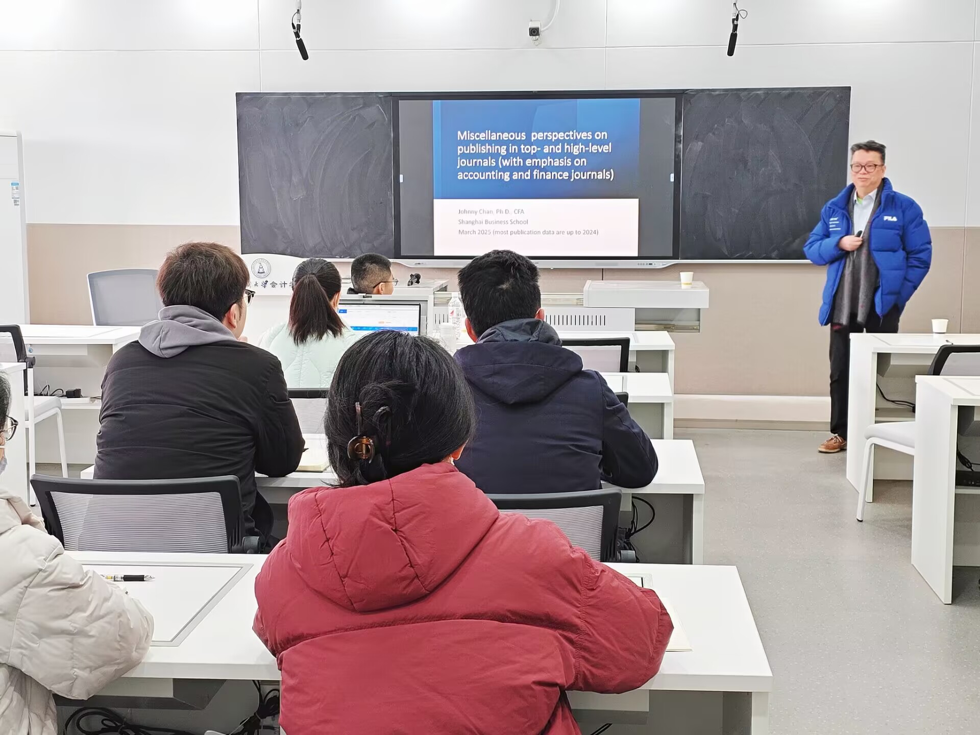 为助力青年学者突破国际期刊发表瓶颈,3月6日,应太阳集团网tyc9728邀请,上海商学院陈锦全教授为我院教师带来主题为《国际期刊发表经验分享》的专题讲座。讲座由太阳集团网tyc9728书记赵立彬主持,学院科研副院长周磊和相关方向的青年教师参加了讲座。