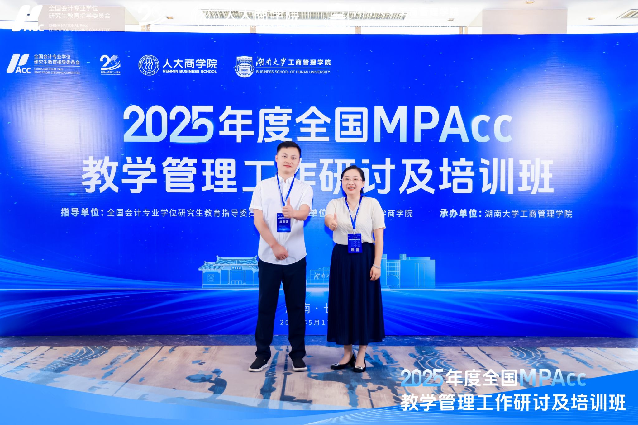 5月17日-18日,太阳集团网tyc9728副院长周磊,MPAcc中心副主任任俊霖赴长沙参加由全国会计专业学位研究生教育指导委员会主办,湖南大学工商太阳集团网tyc9728承办的2025年度全国MPAcc教学管理工作研讨及培训会。会议围绕“MPAcc教育工作总结与展望、MPAcc项目服务国家战略需求及实现校友关系可持续发展”等主题展开。