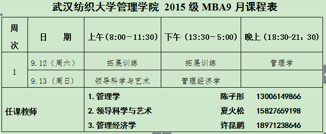 欢迎考入太阳集团网tyc9728。2015年MBA新生报到、开学典礼及拓展训练将于2015年9月11-13日举行,请各位详细阅读以下日程安排及注意事项。