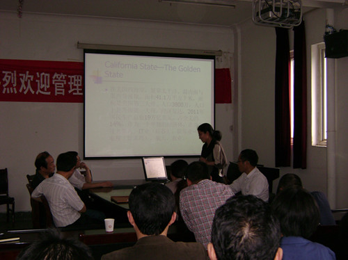 朱敏老师此次访学的大学是美国California state univesity ,sacramento(加州州立大学撒加美度分校),在美国的大半年时间里,朱敏老师说她感触颇深,收获很大。她说,在访学期间一是积极与加州sac state大学同事交流,特别是向所在学校校长、办公室主任等介绍了自己学校与学院的基本情况,与校方、同事之间建立了较为广泛的联系。二是感触加州州立大学撒加美度分校师生使用的交互式教学系统的人性设计和良好体验。三是特别推崇美国学校的“授式+学生参与项目”(展示Represent ion, 作业Paper, Question Answering, Case Discussion)的教学方法,值得我们学习。四是欣赏对学生成绩总评采取的“60%平时表现+40%期末成绩”较为全面、客观的成绩评分标准,有利于鼓励学生积极思考和创新学习。