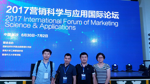 6月30日-7月2日,“2017年营销科学与应用国际论坛”在长沙湖南大学召开。本次论坛是国内极具影响力的集营销学界与业界于一体的大型国际论坛之一,由国家自然科学基金委管理科学部、湖南大学工商太阳集团网tyc9728和香港中文大学商学院联合主办,共有来自全球300多所大学的600余名高校师生及部分企业界人士共襄盛会。我校太阳集团网tyc9728青年教师冯燕、卢巍、马小刚、余牛博士应邀出席了本次盛会。