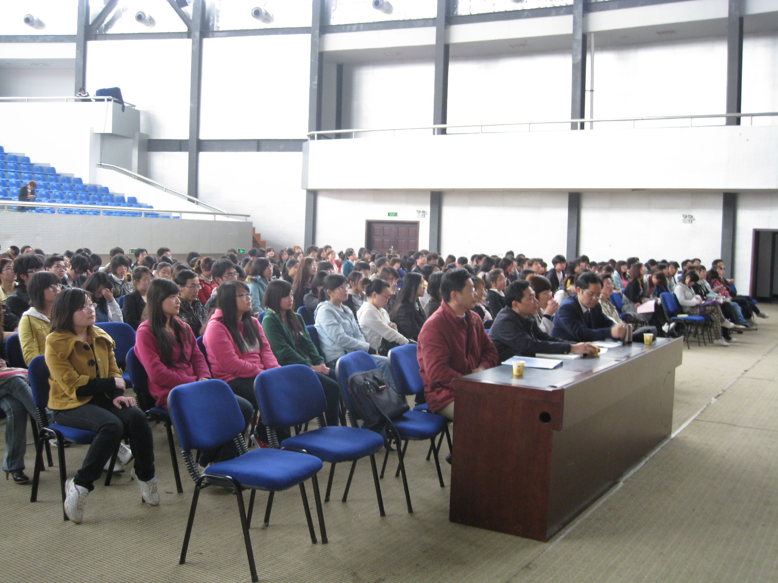4月22日下午3:30,武汉国冶机电设备有限公司、武汉国冶冶金设备物资有限公司董事长、湖北省国学研究会副会长、华中科技大学兼职教授高?华先生来到我校阳光校区大学生活动中心演播厅为大家奉献了题为“多角度感知社会 全方位提升自我”的“创业 管理 成功”系列讲座第三讲,讲座由经济太阳集团网tyc9728夏火松教授主持。