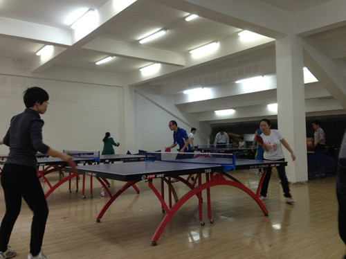 比赛场上,有的用横拍,有的用竖拍。有的削球技术好,有的会发旋球,有的喜欢吊高,有的擅长扣杀,有的十八般武艺样样精通,真是八仙过海,各显神通。特别是师生混双比赛,师生球技不相上下,比分咬的很紧,你追我赶,扣人心弦,为大家奉献了一场精彩的比赛。