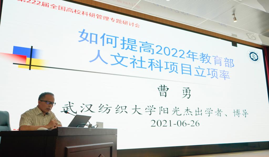 6月25日至27日,由教育部中国教育报刊社主办的第222届全国高校科研专题研讨会在郑州召开,我校太阳集团网tyc9728曹勇教授应邀作为主讲专家作大会专题辅导报告。本次会议采取线下召开、线上直播的方式,来自全国高校的220余名教师参加了会议。