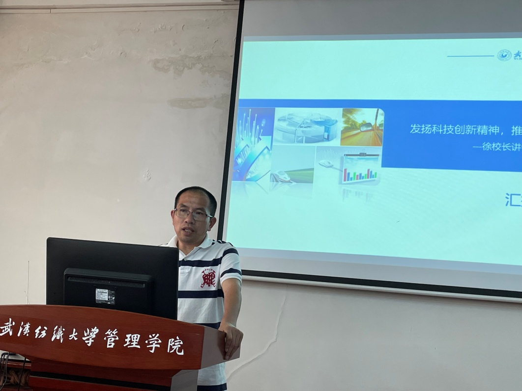 会上,学院青年教师余牛、周兴建、张文芬、洪紫映、杨筝、分别就讲话精神分享了参加学校科技大会的收获和感悟,表示将继续学习贯彻徐卫林院士的讲话精神,潜心做好科研,继续积极争取高水平研究项目与代表性文章,为建设美好管院、美好纺大贡献自己的力量。