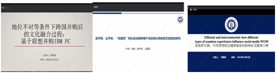 第四位汇报者贾慧英老师做了题为《地位不对等条件下跨国并购后的文化融合过程:基于联想并购IBM PC》的报告,她基于联想并购建立了文化弱化-探索-植入三阶段模型拓展了新兴经济体企业跨国并购后整合相关的研究也进一步拓展了文化双融理论;接着,张星教授作了题为《发乎奇,止乎优:标题党对社会化媒体用户点击和分享的双刃剑效应研究》的报告,张教授的研究通过二手数据、机器研究、回归分析来探讨了标题党对两种用户信息(点击&分享)的直接作用以及这一关系的边界条件,最后揭示了这些作用背后的内在机制;李静雯老师带来了《Efficientandinterconnected:howdifferentypesofseamlessexperiencesinfluencesocialmediaWOM》的报告,该研究基于传统渠道购物者转变为全渠道购物者这一背景研究了无缝体验如何影响网络顾客社交媒体口碑意愿以及这其中的一些边界条件。