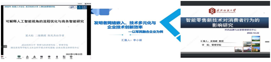 首先夏火松教授为大家带来《可解释人工智能视角的流程优化与商务智能研究》相关内容,夏教授从问题提出、研究视角、文献分享以及未来研究方向四个方面进行了分享,着重讲解从理论视角和实践视角如何提出问题,以及从三篇文献所研究的相关内容给出了一些未来可研究的方向;李小丽教授做了题为《发明者网络嵌入、技术多元化与企业技术创新效率-以军民融合企业为例》的报告,李老师从选题由来方面给我们分享了这篇文章,该文献通过选举军民融合企业测算出其技术创新效率并构建了技术多元化与发明者合作网络相互作用模型;吴锦峰教授做了题为《智能零售新技术对消费者行为影响的研究》的报告,吴教授主要介绍了基于互联网与数字经济发展迅猛的同时,全渠道模式成为当下零售业标准模式的背景下多渠道整合质量对顾客感知价值和线上购买意愿的影响,以及多渠道零售系统顾客采纳意愿的影响因素等研究。