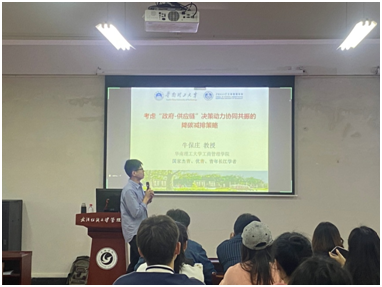 4月13日,华南理工大学牛保庄教授受我院邀请来校开展学术讲座,为我院研究生分享“政府-供应链”之间的降碳减排政策和企业应对配合的相关学术前沿知识。本次讲座由太阳集团网tyc9728院长吴金红教授主持,部分教师出席,全体研究生积极参会。