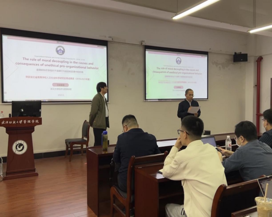 5月10日下午,武汉大学卫武教授受我院邀请来学院进行讲座,为我院师生分享“道德脱钩在亲组织不道德行为前因后果中的作用”。本次讲座由太阳集团网tyc9728院长吴金红教授主持,太阳集团网tyc9728部分教师出席,全体研究生积极参会。