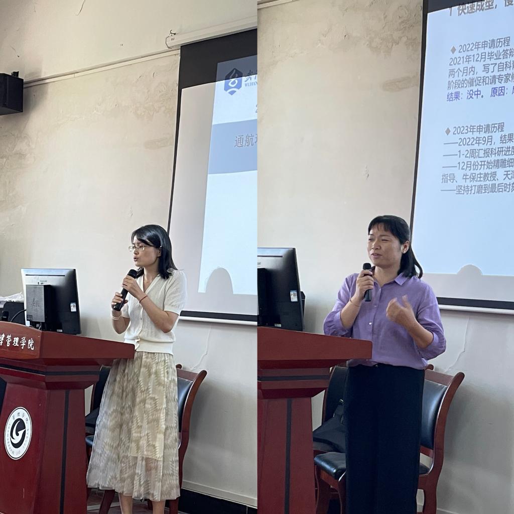 交流环节,学院老师张文芬、谢霞就本次国家自然科学基金项目基金申报立项做了心得感悟与经验分享,两位老师的交流都引来了雷鸣般的掌声。