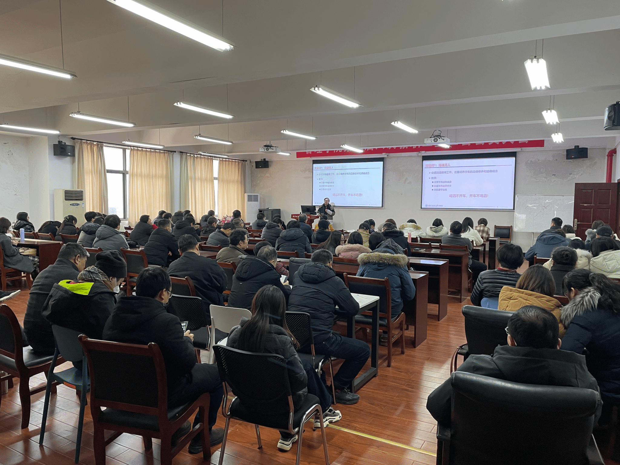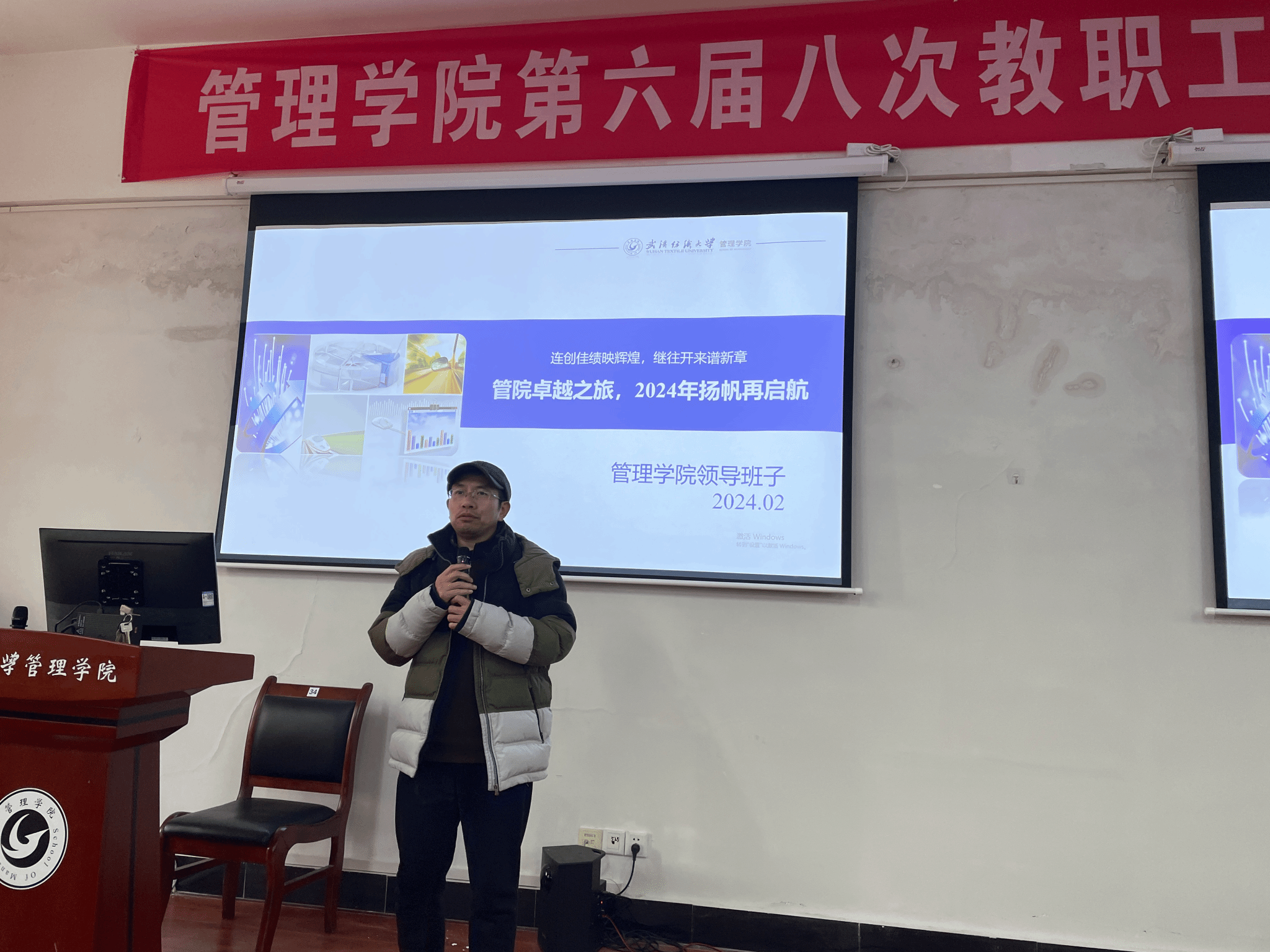 会上,院长吴金红代表学院班子作《管院卓悦之旅,2024年扬帆再启航》的工作报告,报告中,总结了2023年学院教育教学、人才培养、科研项目、研究生培养等工作亮点,充分肯定了学院2023年发展所取得的成绩。并结合2024年全国教育工作会议中的七项重点任务,提出“铸魂育人”、“科教融合”、“教育数字化”三个关键词,勉励全体教职工大力弘扬践行教育家精神,拓展人才培养新思路,全院营造立德树人、尊师重教的氛围。最后,围绕2024年工作规划与要点进行了工作部署与安排。他强调,一是要继续做好科研工作,力保基础目标,争取面上项目;二是做好人才培养工作,抓好人才培养质量,树立学生典型,以多渠道、多措施提高学院本科就业考研率;三是高质量做好本科教育教学工作,保证平稳运行,力争标志性成果突破;四是以高质量高标准做好学科建设,围绕博士点、MBA、中外合作办学申报,做好学科建设;五是完善学院内部制度改革,继续提高学院管理效率、水平和服务质量。他勉励全体教职工在新学期躬耕讲坛、潜心育人,以强烈的社会责任感,切实担当起肩负的神圣使命。